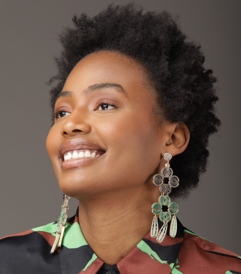 Instantly elevate any outfit with this wearable art earring set. These cherry blossom flower inspired dangle paper earrings are crafted from high quality, durable paper. They dangle with grace, adding a hint of elegant beauty while being lightweight and comfortable. Featuring a two-tiered flower structure with dangling teardrops and gold leaf edge, these earrings are the perfect accessory for a special occasion. Available in a wide variety of custom colors.